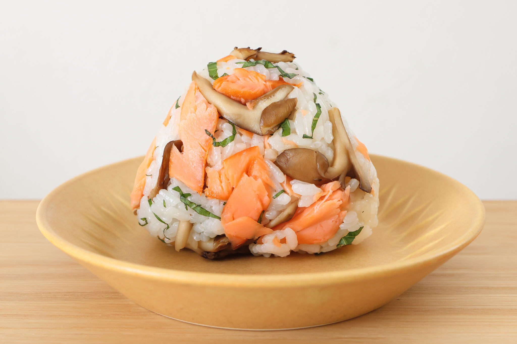 秋の推しアレンジ「鮭とまいたけのおにぎり」アイスム。