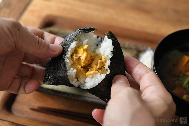 玉子のおにぎりのレシピ 作り方:白ごはん.com。