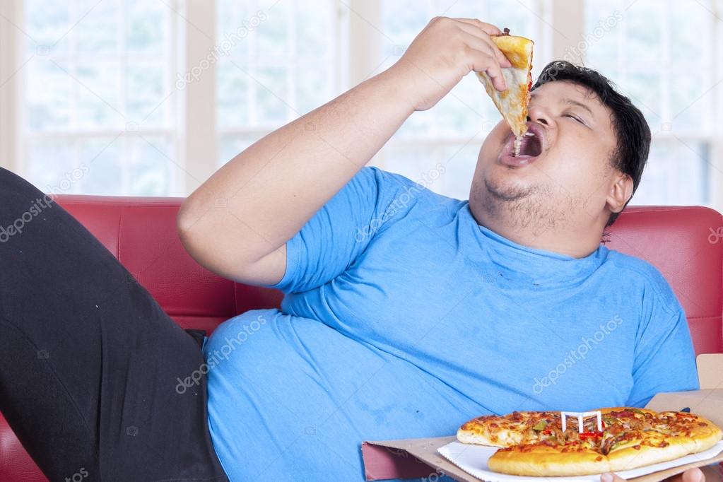 ピザを食べる太った男性のイラスト素材99688298- PIXTA。