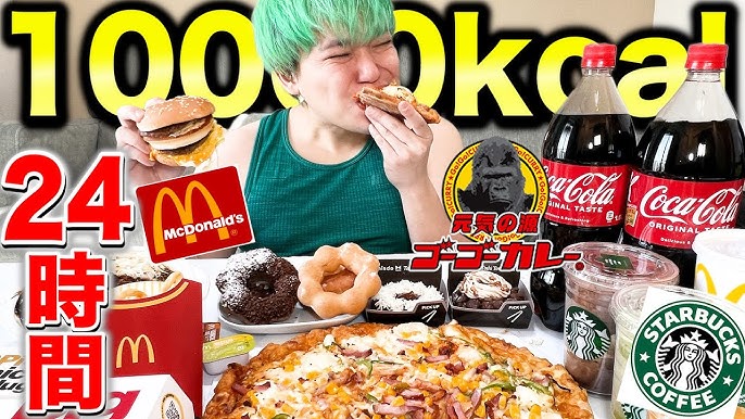 大食い 33歳男性が24時間で10000kcal爆食いしたら何キロ太る? マクドナルド、スタバ、ピザ、ミスド。