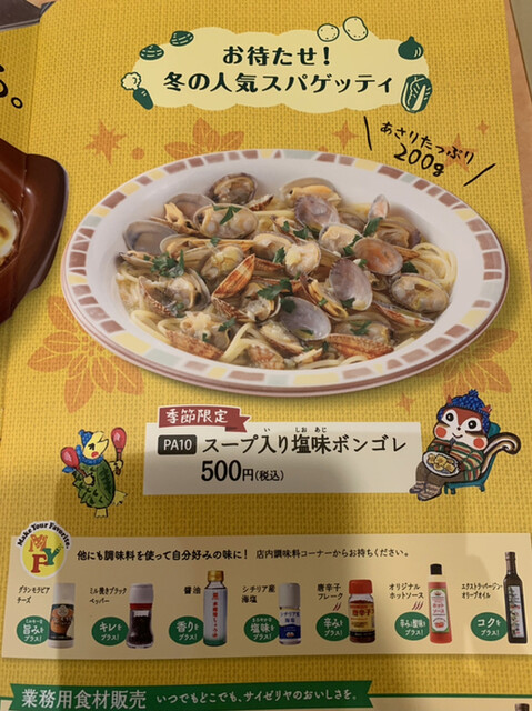 季節のメニュー「スープ入り塩味ボンゴレ」500円』by ☆流れ星 : サイゼリヤ CAPO大谷地店Saizeriya - 大谷地 ファミレス食べログ。
