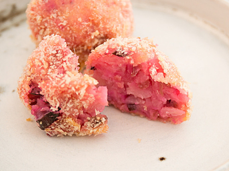 ビーツのジャムを使用したかわいいピンクの白玉ぜんざいです。 - CAMPFIREキャンプファイヤー。