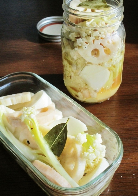 白い野菜の和風ピクルス朝ごはん・昼ごはん・晩ごはん+おやつ。