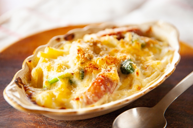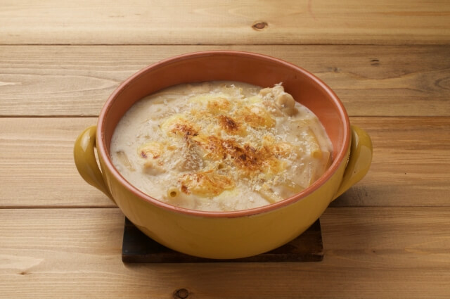 マカロニ要らずで簡単調理!「うどんグラタン」のレシピなべやき屋キンレイ鍋焼うどん・冷凍麺はキンレイ。