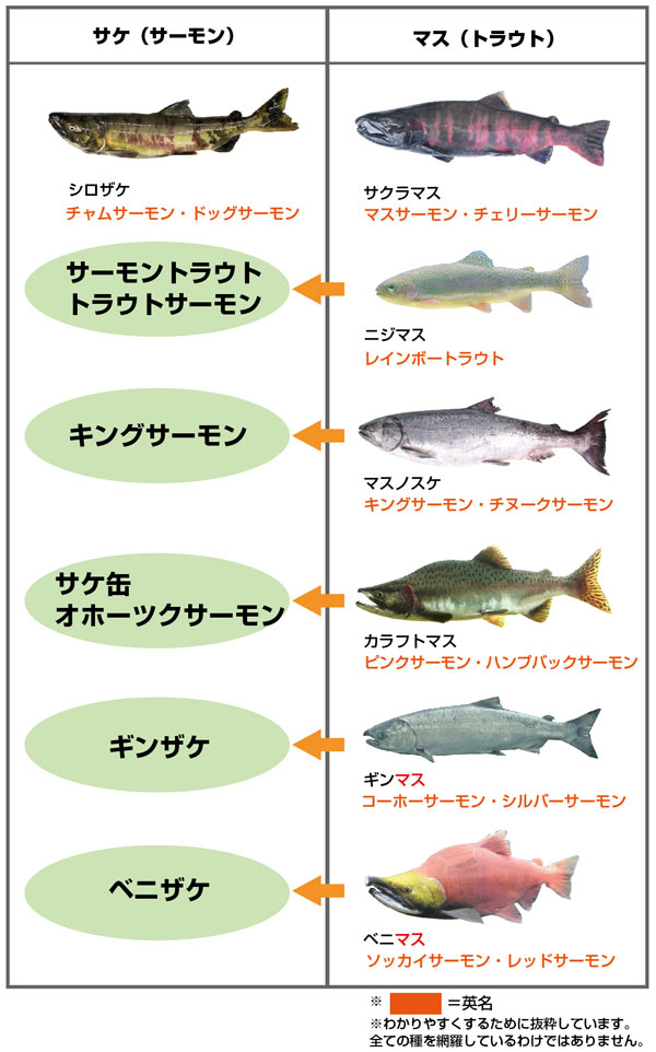 鮭、鱒、サーモン、トラウトの違い魚食普及推進センター 一般社団法人 大日本水産会。