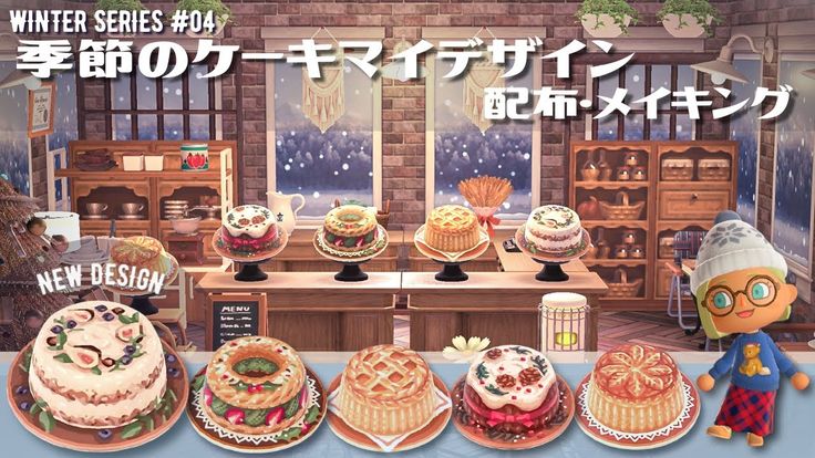 あつ森・マイデザ 季節のケーキ5種 配布 メイキング ACNH Fall and Winter Cakes custom design。