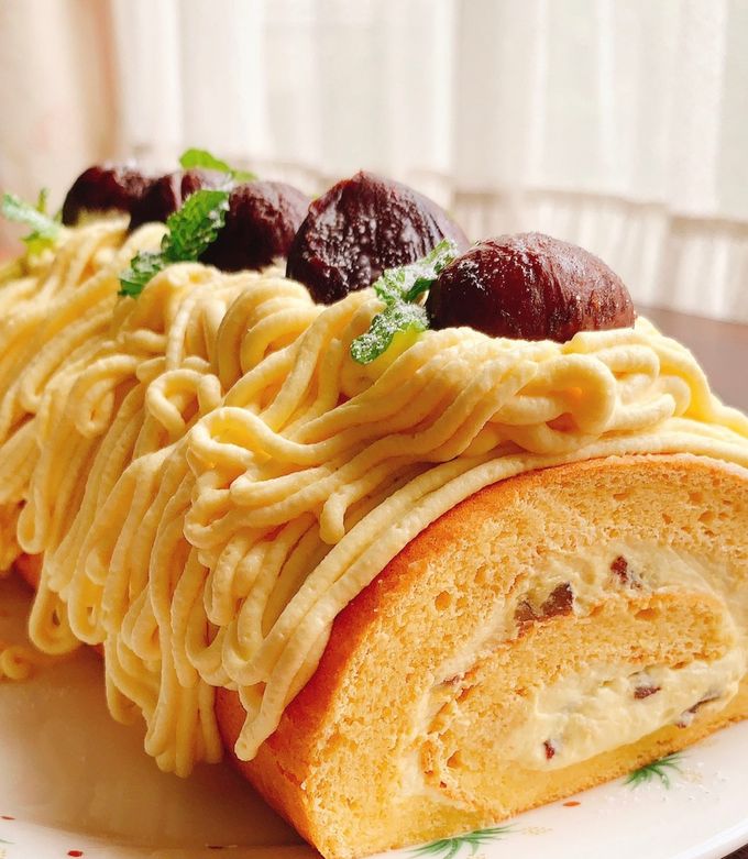 モンブランロールMont-blanc roll cake の作り方 パティシエが教えるお菓子作り方。