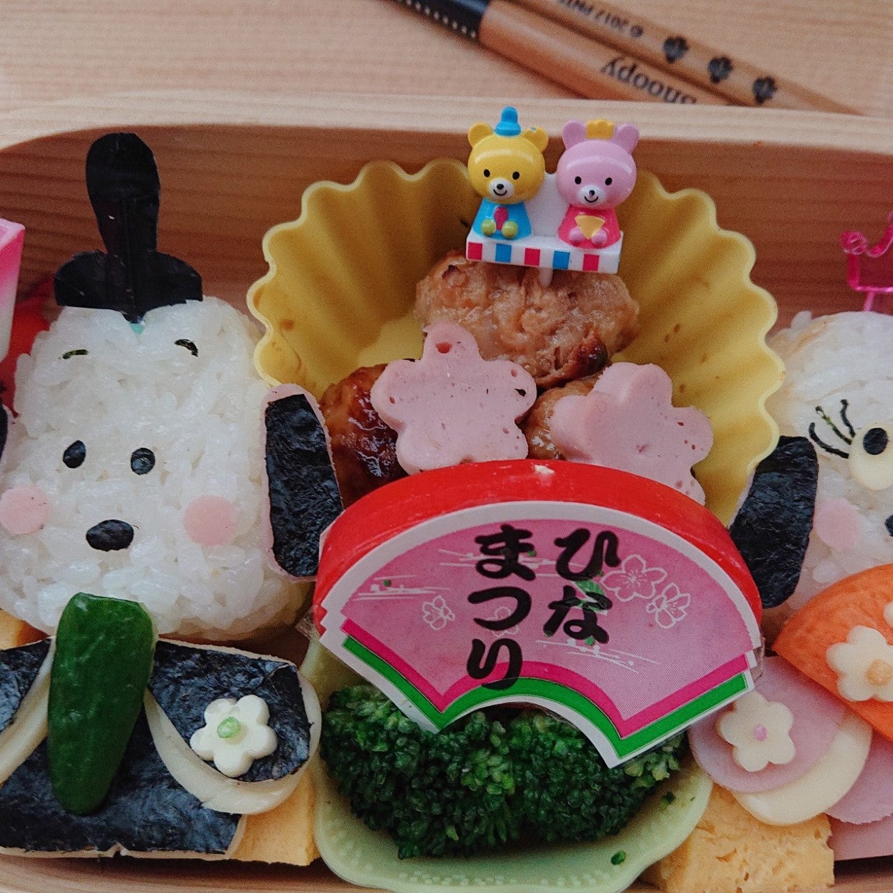 Snoopyとベルでひな祭りキャラ弁 by minminママ♡クックパッド簡単おいしいみんなのレシピが392万品。